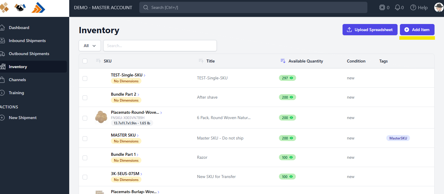 In the left navigation, click Inventory. Click Add item in the top-right corner.